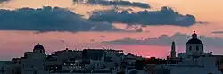 One of the most popular attractions in the town is sunset viewing. It is a special event every evening in Oia from the Sunset Seranade point. At this time the town is crowded with people to watch the spectacle, when the white houses and the caldera catch all the colours of the setting sun for a few seconds.[6]