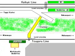 - ^ a b 海峡線、全列車きょうから津軽今別駅通過 北海道新幹線工事で [All Kaikyo Line trains to pass Tsugaru Imabetsu Station from today for Hokkaido Shinkansen construction]. The Hokkaido Shimbun Press (in Japanese). 10 August 2015. Archived from the original on 10 August 2015. Retrieved 22 August 2015.