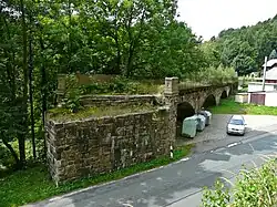 This was only a halt with a platform along the line (50°37′00″N 13°25′24″E / 50.616736°N 13.423364°E), a waiting room in the same layout as that in Niederlochmühle that was still present in 1997, but has been demolished since,[3] a toilet, and an old wagon body as a storage room. Until 1947 it was operated by an agent and had limited freight and parcel services, from then on it was unstaffed. Immediately after the station followed Oberlochmühle viaduct, the largest bridge on the line.