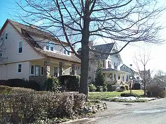 Old Catonsville Historic District is a national historic district in Catonsville, Baltimore County, Maryland, United States. It was laid out with the construction of the electric railway and is overwhelmingly residential, with three churches (one with a school), a modern public library, and an Art Deco water tower. Architectural styles in the district range from mid- to late-19th century vernacular "I-houses" to late-19th and early-20th century styles such as Queen Anne, Bungalow, Colonial Revival, Dutch Colonial, Tudor Revival, and Craftsman. A large number of these dwellings have freestanding garages, typically finished in a like manner to their houses.[2]