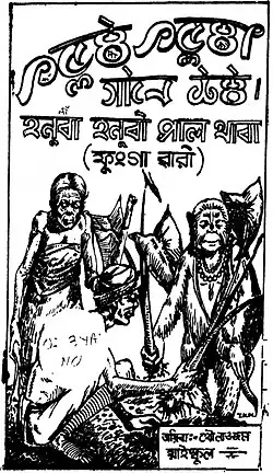An illustration of a 20th century Meitei language story book titled Hanuba Hanubi Pal Thaba, by Yaiskul Thounaojam