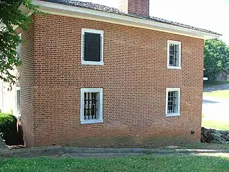 Old Wilkes County Jail is a historic jail located at the Wilkes Heritage Museum in Wilkesboro, Wilkes County, North Carolina. It was built in 1858, and is a two-story, rectangular brick building with a low hipped roof. The jail retains much of its original hardware including strap hinges and several early locks.[2]