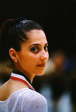 Olena Ihorivna Vitrychenko (Ukrainian: Олена Ігорівна Вітриченко, Russian: Елена Игоревна Витриченко; born 25 November 1976), also known as Elena Vitrichenko, is an Individual Ukrainian Rhythmic Gymnast. She is the 1996 Olympics bronze medalist, the 1997 World All-around champion and 1997 European All-around champion.