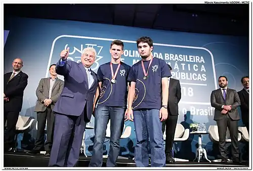 The Brazilian Mathematical Olympiad of Public Schools (Portuguese: Olimpíada Brasileira de Matemática das Escolas Públicas) (OBMEP) is an annual Mathematics contest created in 2005 by the Brazilian Ministério da Ciência e Tecnologia (MCT) and Ministério da Educação (MEC), in collaboration with Instituto Nacional de Matemática Pura e Aplicada (IMPA) and Sociedade Brasileira de Matemática (SBM),[1] to stimulate the mathematics education in Brazil.[2] It is open to public school students from fifth grade to high school. Yearly, around 18 million students are enrolled for its first round.[3][4]