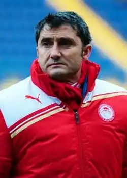 In 2010, Evangelos Marinakis, a successful shipping magnate, bought the team from Sokratis Kokkalis.[3] During the first year of his presidency, Marinakis appointed fans' favourite Ernesto Valverde as coach (who came back for a second tenure in the club) and signed players with international pedigree, such as Albert Riera, Ariel Ibagaza, Kevin Mirallas, Marko Pantelić and François Modesto.[3] As a result, Olympiacos won the Greek title for the 38th time in its history, 13 points ahead of second-placed Panathinaikos.