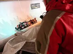 In 1935, Igls hosted the two-man event of the world bobsleigh championships when the track ran from Römerstrasses to the Patscherkofel valley railroad station.[1][3] Several fatal accidents at the finishing curve occurred during competition, causing temporarily closure of the track until safety measures were introduced.[1] In 1960, Innsbruck was awarded the 1964 Winter Olympics which led to the construction of separate bobsleigh and luge tracks for the games.[4] Track construction began in September 1961 and was officially completed in July 1963 following test runs of both tracks, including twenty injuries during the 1963 FIBT World Championships on the bobsleigh track.[4][5] Prior to the start of the 1964 Winter Olympics, British luger Kazimierz Kay-Skrzypeski was killed in a training run on the luge course.[6] When Denver, Colorado, in the United States withdrew in 1972 after being awarded the 1976 Winter Olympics two years earlier for financial reasons, the International Olympic Committee offered the games to 1976 runner-up Whistler, British Columbia in Canada (northeast of Vancouver), but Whistler declined in the wake of the provincial elections in 1972. As a result, the IOC gave the games to Innsbruck. Construction on a new, combined track was started in 1973 under the auspices of the International Bobsleigh and Tobogganing Federation (FIBT) and the International Luge Federation (FIL) and completed the following year.[1][7] The track was praised by the FIL during testing in 1975 [8] and proved so successful that it fostered a commission with the FIBT and the FIL on construction of combination tracks in 1977 that continues to this day.[9] (Known as homologation, an example of this dual certification process occurred prior to the 2006 Winter Olympics, when adjustments to the track at Cesana Pariol were made following FIL concerns about the run.[10][11]) The track added a restaurant and was extended in 1981.[1] In 1990–1, the ladies start house at the fifth turn was renovated and the finishing stretch was extended in 1998.[1] The track was part of the OlympiaWorld-Innsbruck in 2004, the same year a general refurbishment was done on the concrete shell.[1] Today, it serves as a training facility for new bobsledders and skeleton racers.[12] It hosted the bobsleigh, luge, and skeleton events for the 2012 Winter Youth Olympics.[2]