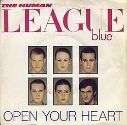 "Open Your Heart" is a song by the English synth-pop band the Human League. It was released as a single in the UK on 2 October 1981 by Virgin Records and peaked at number six in the UK singles chart. It was written jointly by lead vocalist Philip Oakey and keyboardist Jo Callis. The song features a lead vocal by Oakey and female backing vocals by Susan Ann Sulley and Joanne Catherall, analogue synthesizers by Jo Callis, Philip Adrian Wright and Ian Burden. Drum machines, sequencing and programming were provided by producer Martin Rushent.