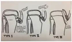 Type III: Complete fracture (through articular surface) including high chance of meniscal damage. This type of fracture usually requires surgery.
