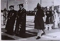 The government invited Patrick Geddes and Edwin Jasper to set up a permanent campus of the university.[16] Geddes surveyed prospective locations and presented his report in 1923.[13] Jasper drew up the building plans and the Nizam laid the foundation stone for the campus on 5 July 1934.[13] After Jasper left Hyderabad, the state architect Zain Yar Jung supervised the construction of the campus.[17]
