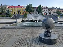 During the German invasion of Poland, which started World War II, the Wehrmacht captured the town on 8 September 1939. Afterwards it was occupied by Germany and included within the Radom District of the General Government, formed of German-occupied central Poland.[6] In 1940 the Germans carried out mass arrests of Poles as part of the AB-Aktion. Poles arrested in March were either deported to Nazi concentration camps or massacred in Góry Wysokie, while those arrested in June were imprisoned and tortured in Skarżysko-Kamienna and then murdered in a forest near Skarżysko-Kamienna.[7] Germans carried out several executions and massacres in the town. On 30 September 1942, 29 Poles, including merchants, teachers and local officials, were hanged at the Market Square.[8] In 1944, the Germans poured corrosive substances into their mass grave in attempt to cover up the crime.[8] Most of the town's Jewish community of app. 11,000 was murdered in the Holocaust in 1943–1944.