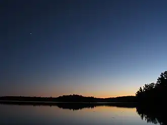 There are several segments to the lake. The "Long Arm" is a long, narrow portion which goes to the east. The "Little Long Arm" protrudes to the west. The "Little Otter" part is to the north, separated from the rest of the lake by the Otter Lake Narrows.[3][4] The unincorporated places and railway points of Otter Lake[5] and Holmur[6] are at the narrows and on the north side of the lake respectively. The water level is controlled by a dam at the outflow to the Boyne River at the Little Otter portion of the lake.[3]