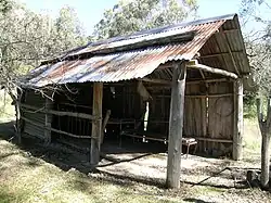 The Youdales Hut is an historic pioneering timber slab walled hut that was built in the 1930s on a small pastoral run established in the Kunderang Gorges. Alan Youdale is believed to have been guided here by an Aboriginal man, and he then settled here in circa 1939.[14] This camping ground is approximately 96 kilometres (60 mi) from Walcha and can be accessed via Kangaroo Flat Road, which leaves the Oxley Highway 55 kilometres (34 mi) from Walcha. The trail is narrow and steep and a 4WD with low range is necessary. Trailers are not permitted. Access is also possible via Carrai Road, Coachwood Road and the Racecourse Trail from Kempsey, or the Hastings Forest Way and Racecourse Trail from Port Macquarie. Visitor numbers are limited so bookings are essential. A permit and key is necessary to gain entry to this area and they may be obtained from Apsley Motors or the Park office, Walcha. The area caters for both picnickers and campers, with wood barbecues (wood provided), toilet and interpretation display at the hut. It's ideal for picnics, swimming and short walks.