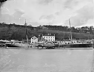 PS Milford was one of a pair of ships ordered from William Simons and Company of Renfrew, the other being PS Limerick. She was built under the superintendence of Mr Glover, the consulting engineer of the Great Western Railway and launched on 9 August 1873 by Miss Brown.[2] She undertook sea trials October and on 20 October 1873 was reported as proceeding along the River Clyde at a speed of 14.3 knots, despite a heavy swell and severe gale.[3]