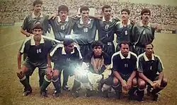 Pakistan's starting line-up in 5–3–2 sweeper formation at the 1991 South Asian Games final against Maldives[26]