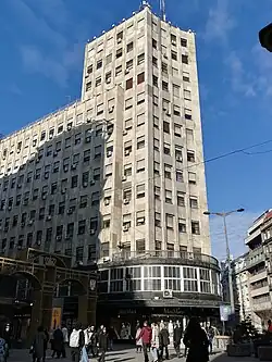 Palace Albanija (Serbian: Палата Албанија, Palata Albanija, literally "Palace Albania") is a high-rise building in Belgrade, Serbia. Important construction and architectural innovations were incorporated into the project, which made Albanija an exceptional building endeavor in the Balkans.[1] When completed in 1939, it was the first skyscraper in Southeast Europe.[2] It remained the tallest building in Belgrade for 3 years, until being surpassed by BIGZ building in 1941. It remained the tallest building in the old part of Belgrade for the next 34 years, until being surpassed by the Beograđanka ("Palace Belgrade") in 1974.[1][3]