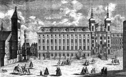 The college was rebuilt by Bishop Marek Khuen z Olomouce in 1564 to provide lectures both to public administrators and to prospective teachers. His successor Vilém Prusinovský z Víckova invited Jesuits to Olomouc in 1566. Several education initiatives rapidly ensued in the city: it is apparent that by 1567 the Jesuits were running the college.[9] The Olomouc episcopacy pledged to finance the college with 500 Tolars a year (the amount was raised to 2000 Tolars a year in 1570).[10]