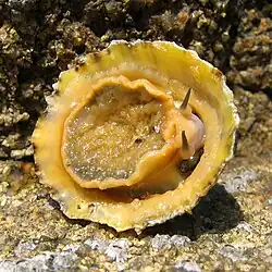 Patella rustica, the Lusitanian limpet[2] or rustic limpet[3] is a species of sea snail, a true limpet, a marine gastropod mollusk in the family Patellidae, one of the families of true limpets.[1] It is a rocky shore intertidal mollusc found throughout the Mediterranean and the north-east Atlantic from Mauritania to southern France.[4]