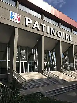 This is one of the largest rinks in France: it has indeed Olympic-size, namely 60 x 30 meters. The building is 80 x 70 meters at ground level and the roof tilted toward the rear of the building is 72 meters long. The materials of the buildings are reinforced concrete, glass and aluminum. The rink is composed of a skating rink, technological offices, stands with 5000 seats (3200 seated places), a large hall, changing rooms specialist, a bar and a room for meetings, gyms and dance.[1] It has about 400,000 entries each year.[2]