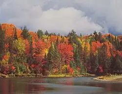Paudash Lake lies within the Great Lakes-St. Lawrence Forest region. The native trees of the Paudash Lake area include the silver, red, sugar, mountain, and striped maple; the jack, red, and white pine; the largetooth and trembling aspen; the yellow and white birch; black, white, and possibly red spruce; the bur and red oak; the white, black, and red ash; the pin, black, and choke cherry, and the balsam fir, eastern tsuga (hemlock), tamarack (larch), balsam poplar, white cedar (Thuja occidentalis), American beech, ironwood (Ostrya virginiana), and speckled alder.[6]