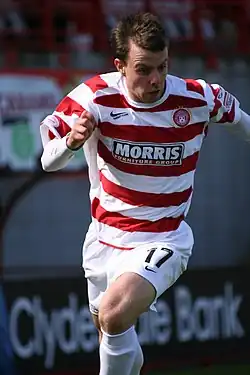 McGowan was loaned out to SPL side Hamilton Academical at the beginning of the January 2009 transfer window,[10] and started his first game with an assist for Chris Swailes in the 1–0 win over Ross County in the Scottish Cup. His first goal for the club came on 21 February 2009 in a 2–1 win over Falkirk, scoring from 10 yards out.[11] At the end of the 2008–09 season, his loan spell came to an end.[12]