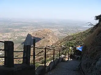 Pavagadh is a municipal operated region in Panchmahal district about 46 kilometres (29 mi) away from Vadodara in Gujarat state in western India. It is known for a famous Mahakali temple which is one of the 51 Shaktipeeths and draws thousands of pilgrims every day. However, as per records, this was originally a Jain temple belonging to the Svetambara Achalgaccha sect, whose Adhistayika Mahakali's idol was installed here in the 12th century. This locality Champaner-Pavagadh Archaeological Park was declared by UNESCO as a World Heritage Site in 2004.[1]