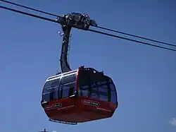The Peak 2 Peak Gondola is a tricable gondola lift at Whistler Blackcomb Resort in Whistler, British Columbia, linking Whistler Mountain's Roundhouse Lodge with Blackcomb Mountain's Rendezvous Lodge. It is the first lift to join the two side-by-side mountains. It held the world record for the longest free span between ropeway towers at 3.03 kilometres (1.88 mi) until 2017 when the Eibsee Cable Car exceeded it by 189 metres (620 ft).[1] It is still the highest point above the ground in a gondola at 436 metres (1,430 feet),[2] although a temporary aerial tramway in Switzerland used between 1979 and 1986 had larger span. The gondola was built by the Doppelmayr Garaventa Group in 2007 and 2008 at a cost of CDN$51 million.[3] The Gondola is the first Doppelmayr "3S" tri-cable lift in North America; there are four similar but smaller lifts in Europe which were built in 1991, 1994, 2002, 2004 and 2010 in Switzerland, Austria, France and Germany.[4] Whistler Blackcomb promotes the gondola as an attraction and uses it to transport skiers in the winter months, as well as sightseers year-round.