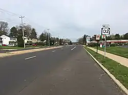 Pennsylvania Route 132 (PA 132) is a state highway in southeast Pennsylvania. The route, which is signed east–west, runs northwest to southeast through Bucks County in suburban Philadelphia from PA 611 in Warrington southeast to Interstate 95 (I-95) in Bensalem. PA 132 is a commercial route lined with shopping centers throughout much of its 15-mile (24 km) length. It is named Street Road for its entire length and is five lanes wide for much of its length. The route was also designated as the Armed Forces and Veterans Memorial Highway in 2005. From west to east, PA 132 intersects PA 263 and PA 332 in Warminster; PA 232 in Southampton; PA 532 in Feasterville; and U.S. Route 1 (US 1), the Pennsylvania Turnpike (I-276), PA 513, and US 13 in Bensalem. Street Road was included in William Penn's survey plans and completed by 1737. The road was paved by 1911 and received the PA 132 designation between US 611 (now PA 611) and US 13 by 1927. The route was widened into a multilane highway and extended east from US 13 to I-95 by 1970. An interchange with the eastbound direction of the Pennsylvania Turnpike opened in 2010.