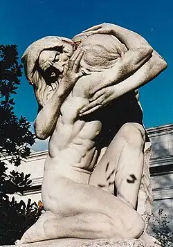 Five heroic-size plaster sculptures for the Pennsylvania Capitol groups – The Prodigal Son, Brothers, The Young Parents, Kneeling Youth, Forsaken Mother – were part of an exhibition of Barnard's work at the Museum of Fine Arts, Boston in October–November 1908.[5] Also exhibited were his plaster scale models of the complete sculpture groups.[6] In a review in The International Studio, critic J. Nilsen Laurvik compared Barnard to Auguste Rodin and the recently deceased Augustus Saint-Gaudens, concluding: "[H]e is the one man most needed in the art life of our country; his work is like an invigorating breath of fresh sea air that must surely have its influence in giving a more vital and higher meaning to both life and art. ... [H]e is a unique personality in the art life of our country and one of the few truly great sculptors of our time."[7] Critic William Howe Downes also enthusiastically praised his work: