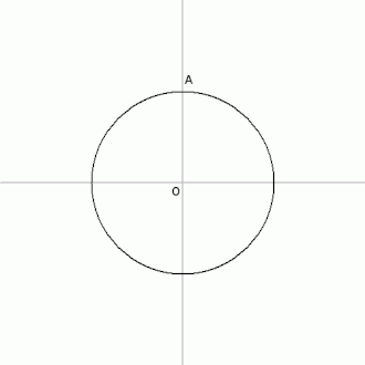 3. Construct a vertical line through the center. Mark one intersection with the circle as point A.