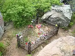 According to legend Petit Jean was actually a young 18th century French woman. When she discovered that her fiancé planned to explore the Louisiana Territory, she cut her hair, disguised herself as a boy and managed to find a position as a cabin boy. She survived the voyage and the expedition began their exploration. Once they had reached the area of the mountain, the young woman became ill, on her deathbed she revealed herself to her fiancé, and was buried on the mountain, not under her own name, but under the name she had been known by on the ship, "Little John".