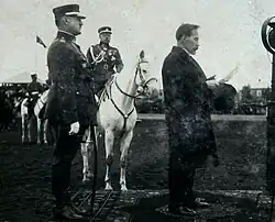 Kubiliūnas continued his military education: he completed the Higher Officers' Courses in Kaunas in 1925, attended the War College in Prague in 1927, and took courses in Paris in 1929.[3] From August 1927 to July 1934, Kubiliūnas served as an officer of the Lithuanian General Staff. In February 1929, he took the position of the Chief of the Lithuanian General Staff and was promoted to Lieutenant General in November.[2] He was active in military education reforms, helping to transform the Higher Officers' Courses into a higher military school.[4] He actively worked on improving weaponry and military equipment as well as preparing plans for mobilization and military operations. He initiated the establishment of the Gaižiūnai proving ground in 1930.[3]
