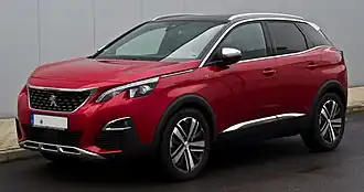 The Peugeot 3008 is a compact crossover SUV manufactured and marketed by Peugeot. It was first presented to the public in Dubrovnik, Croatia in 2008, and then again in 2010 at the Mondial de l'Automobile in Paris, by the French manufacturer Peugeot. It was launched in April 2009 as the successor to the Peugeot 4007 and Peugeot 4008, and it fills a gap in Peugeot's model lineup between the Peugeot 308, with which it shares its platform, and the Peugeot 5008, its larger counterpart.[1] The second-generation model, which is based on an EMP2 platform first seen on the second-generation Peugeot 308, was released in May 2016, with the vehicle being available as of January 2017. The third-generation model released in September 2023, it is based on the Stellantis' SLTA Medium platform, shared with a wider range of other Stellantis vehicles.