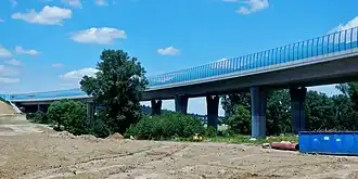 The Pfinztal Bridge (German: Pfinztalbrücke) is a 470 m long prestressed concrete beam bridge on the Bundesautobahn 8 (A8) in Remchingen-Nöttingen in the Enzkreis district of Baden-Württemberg, Germany. It spans the Pfinz valley at a height of about 25 m and was constructed as part of the six-lane widening of the A8 between Karlsbad and Pforzheim-West.[1][2]