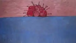 According to Musa Mayer's biography of her father in Night Studio, the painter Willem de Kooning was one of the few who instantly understood the importance of these paintings, telling Guston at the time that they were "about freedom."[20] Cherries III from 1976, held in the collection of the Honolulu Museum of Art, is an example of his late-style representational paintings. Although cherries are a mundane subject, their spiky stems can be a metaphor for the crudeness and brutality of modern life.[21]