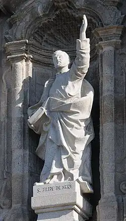 In 1548, together with his confessor, Persiano Rossa, Philip founded the Confraternity of the Most Holy Trinity of Pilgrims and Convalescents (Italian: Santissima Trinità de' Pellegrini e de' Convalescenti),[4] whose primary object was to minister to the needs of the thousands of poor pilgrims who flocked to Rome, especially in jubilee years, and also to relieve the patients discharged from hospitals but who were still too weak for labor.[2] Members met for prayer at the Church of San Salvatore in Campo[5] where the devotion of the Forty Hours of Exposition of the Blessed Sacrament was first introduced into Rome.[6]