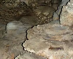 Tiên Sơn cave is located in Phong Nha-Kẻ Bàng National Park. The cave was discovered by a local inhabitant by accident in 1935.[10] It is located in Sơn Trach Commune in Bố Trạch. The entry mouth of Tiên Sơn is 1 km from Phong Nha cave, at an altitude of 200 m. This cave is 980 m in length. A 10 m deep hole is situated 400 m from the entry mouth, then a 500 m long cave, dangerous for tourists and open to professional expeditionists only. Like Phong Nha cave, this cave features spectacular stalactites and stalagmites shaped like several fairy-tales. Stalactite and stalagmite columns and walls here create strange sounds like that of gong and drum if they are knocked with the hand. According to British cave scientists, Tiên Sơn cave was created tens of million years ago when a water current holed this limestone mount in Kẻ Bàng. Following a series of landforms and movement of rocks, this mass was levered or lowered, blocking the current and creating what is now Tiên Sơn cave while the underground river redirected its current to Phong Nha cave. Although Phong Nha and Tiên Sơn caves are located next to each other, there are no linking grottos between them.[30]