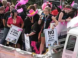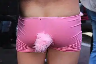 The Pink Loerie Mardi Gras and Arts Festival is an annual LGBTQ Pride carnival event and parade held in Knysna, a coastal township in the Western Cape province of South Africa. Events include their version of the Wigstock drag queen festival, a bear fest, athletic events, and an art festival.[1] It is one of the country's largest LGBTQ events.[2] Since its start in 2000 it has grown to be a significant event for the town culminating in the grand finale of Pink Loerie, Knysna Pride parade and its 1000-person after-party held on the final weekend with floats, performers, and DJs. The Knysna loerie is a green bird but the color pink has a long association with LGBTQ culture.[3]