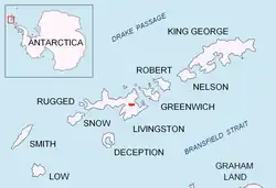 This article includes information from the Antarctic Place-names Commission of Bulgaria which is used with permission.