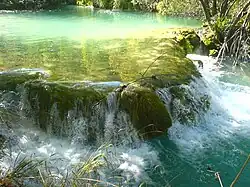 The national park's lakes are arranged in cascades. Sixteen lakes can be seen from the surface.[3] The lakes are renowned for their distinctive colors, ranging from azure to green, grey or blue. The colors change constantly depending on the quantity of minerals or organisms in the water and the angle of sunlight.[4]