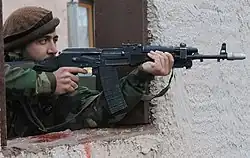 The Police of North Macedonia work closely with the NATO peacekeepers in patrolling areas with high numbers of ethnic Albanians ever since the 2001 Macedonia conflict ended, and have been receiving weapons from surrendering Albanian insurgents.[8] Violent attacks, however, still occur as in 2001 three officers were killed by Albanian gunmen.[14]