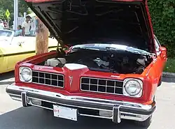 The 1977 model year was the last for the Le Mans and Grand Le Mans built off the 1973-vintage Colonnade body. Appearance changes were limited to revised grilles and taillight lenses. Engine offerings were revised with Buick's 231 cubic-inch V6 replacing the Chevy inline-six as the base power plant in sedans and coupes. The base V8 (standard on Safari wagons and optional on other models) was Pontiac's new 301 cubic-inch engine based on the same V8 engine block as other Pontiac V8s but utilized many lightweight components. Optional V8s were pared down to Pontiac-built 350 and 400 four-barrel powerplants. The three-speed manual was the standard transmission on V6 models, while the Turbo Hydra-matic was optional and the only transmission available with the V8 engines. Those drivetrain offerings were available in 49 states. In California, Pontiac V8s were not offered for 1977 due to the inability to meet that state's more stringent regulations. For California, the Buick V6 was standard on most models with the available V8 engines were Oldsmobile's 350 and 403 four-barrel engines. Turbo Hydra-Matic was the only transmission offered in California.