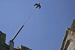 Popinjay or papingo (an old word for parrot, designating a painted bird), also called pole archery, is a shooting sport that can be performed with either rifles or archery equipment. The object of popinjay is to knock artificial birds off their perches. The rifle form is a popular diversion in Denmark; a Scottish variant is also known. The archery form, called staande wip[1] in Dutch language and papegai (i.e. parrot)[2] in French, is popular in Belgium, and in Canada among descendants of 20th-century Belgian emigrants; it is shot occasionally in the United Kingdom under the governance of the Grand National Archery Society. In Germany a traditional shooting at wooden birds placed on a high pole is called "Vogelschießen" (that is "bird shooting"). These are carried out either with small bore rifles or crossbows.
