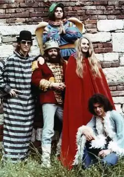The band held happenings in the basement of Atelje 212 theatre.[1] During 1972 and 1973 in Atelje 212 they performed the alternative play Porodična manufaktura crnog hleba – balada Maje de Rado (Rye Bread Family Manufacture – A Ballad by Maja de Rado), during which they performed their music.[1] They had numerous appearances on rock concerts in Belgrade Sports Hall, and in 1972 they performed, alongside Pop Mašina, S Vremena Na Vreme and other bands, on the large open-air concert at Belgrade's Hajdučka česma.[1] In 1973, the band, alongside Time and Josipa Lisac, represented Yugoslavia at the 10th World Festival of Youth and Students in East Berlin.[1] During the same year, the band released their first record, a 7-inch single with the songs "Mudra Mande" ("Wise Mande") and "Pitaš me" ("You're Asking Me") through PGP-RTB record label. The song "Mudra Mande" was sung in a dialect spoken on the island of Brač.[1] On this island they also prepared songs for their first album.[1]