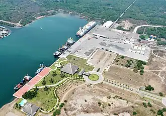 The Port Chiapas (Spanish: Puerto Chiapas) or Puerto Madero[6] is a port in Puerto de San Benito in the Tapachula municipality of the Soconusco region in the southern portion of the Mexican state of Chiapas. The port entrance lies about 13 kilometres (8.1 mi) northwest of the mouth of the Suchiate River which is the international boundary between Mexico and Guatemala. Puerto de San Benito is connected by Highway 225 to Tapachula International Airport and the city of Tapachula. Since its opening in 1975 the port has been a small fishing and agricultural transport center.[5] Upgrades carried out in 2005 and since by the government have added facilities for cruise ships and more heavy cargo.[7] Governor Pablo Salazar Mendiguchía had put interest in the original rustic and old port, and later Governor Juan Sabines Guerrero has ordered development of the true port in the hopes it will attract business to Chiapas, the poorest state in Mexico.[5] Ships of the Holland America Line, Regent Seven Seas Cruises, Norwegian Cruise Line, Oceania Cruises and Princess Cruise Line stop at Port Chiapas.[8][9]