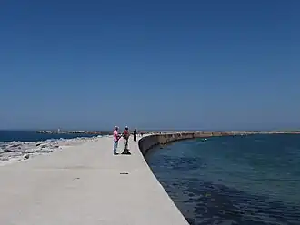 The port's south breakwater also showed aging signs and was recovered in 2009. The Associação Pró-Maior Segurança dos Homens do Mar, with its headquarters in the port, was formed by the fishermen in order to pressure further developments on the seaport and safety at sea, including the complete recovery of it and a permanent solution to the sandbank, something that can be achieved by the enlargement of the north breakwater.[13]