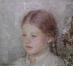 Portrait of Varya Adoratskaya (in Russian: Портрет Вари Адоратской) is a painting created by Nicolai Fechin in the spring of 1914 in Kazan, in the studio of his student Nadezhda Sapozhnikova.[1] The painting belongs to the collection of the State Museum of Fine Arts of the Republic of Tatarstan in Kazan[2] and is displayed in the permanent exhibition of the Nicolai Fechin Hall in the National Art Gallery Khazine.[3] Art historian A. E. Kuznetsov, in an article about the painting's exhibition at the Moscow gallery Art-Divage, called the canvas one of the most brilliant children's portraits in the history of not only of Russian but also of world art.[4]