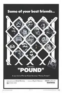 Pound is a 1970 American comedy film written and directed by Robert Downey Sr.[1] It was based on The Comeuppance, an Off-Off Broadway play written by Downey in 1961. It is about several dogs, along with a Siamese cat and a penguin, at a pound, as they await being euthanised; the animals are played by human actors. The film is best known for marking the acting debut of Downey's son and namesake, then-5-year-old Robert Jr., as Puppy.[2]
