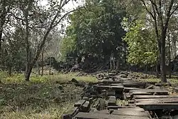 There is little historical data about Preah Khan Kompong Svay. Some French scholars have argued that it was founded in the 11th century, probably by Suryavarman I.[2]: 136 [3]: 95  Evidence from sediment analysis suggests that the site was fully abandoned during the late 14th to 15th century, with maintenance of temples and infrastructure ceasing around the mid-14th century.[4] The complex is notable for its use as a royal residence during the kingdom of Suryavarman II and as a military outpost for Jayavarman VII during conflicts with the Cham in the late 12th century.[1][5]