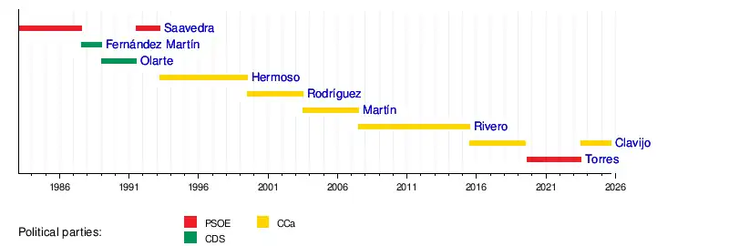 - ^ "Real Decreto 35/1983, de 12 de enero, por el que se nombra Presidente del Gobierno de Canarias a don Jerónimo Saavedra Acevedo" (PDF). Boletín Oficial del Estado (in Spanish) (11). Agencia Estatal Boletín Oficial del Estado: 840. January 13, 1983. ISSN 0212-033X.