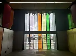 On 5 September 2022, the rebuilt station opened to the public.[24] The elevated station opened in a basic state, with lifts, paving and additional exits opened on the north side of the station.[25] In 2023, the open spaces were completed.[4] The Preston station area features an improved cycling and walking paths which opened in late 2022, expansive open space, newer and safer connections to popular local destinations and the station facades' bright colour which features a barcode reflecting the vivid colours of produce found at Preston Market.[4]